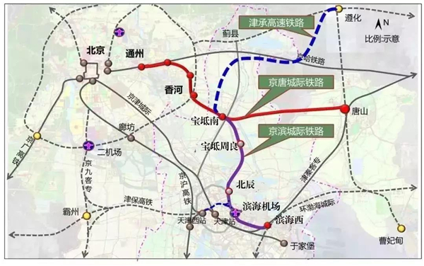 京濱鐵路起自寶坻南站,終至濱海西站,與京唐鐵路共同構(gòu)成京津之間的第3條高鐵通道。線路長度約97公里,總投資238億元,全線共設置寶坻南、寶坻周良、北辰、濱海機場、濱海西5座車站。京濱鐵路建成后,北京直達天津濱海新區(qū)只需57分鐘,從寶坻南站到北京站僅需18分鐘,寶坻到天津機場只需15分鐘。