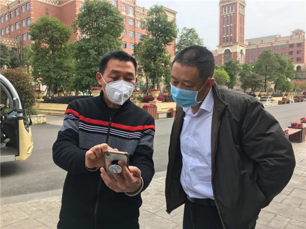 辜英智董事長向李書記介紹我院紀(jì)檢、人事、教務(wù)部門每日督察各班在線教學(xué)開展情況,并每日在干部群匯報(bào)