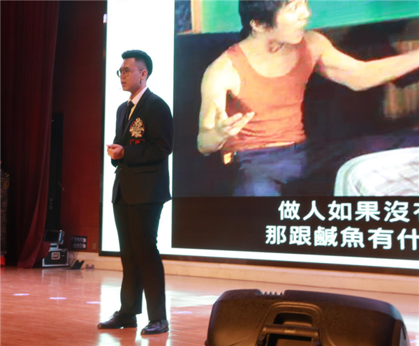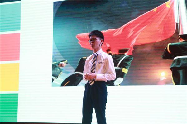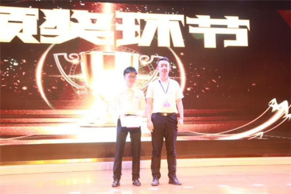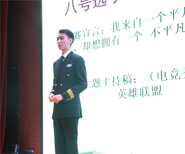 2019級地勤3班的叢海晨同學(xué)以詼諧幽默的方式在舞臺上演繹著另類主持,最終憑借其獨特的主持風(fēng)格獲得主持人大賽亞軍,眉山東星航空職業(yè)學(xué)校執(zhí)行校長楊校長為他頒獎。