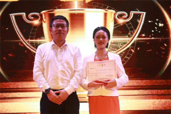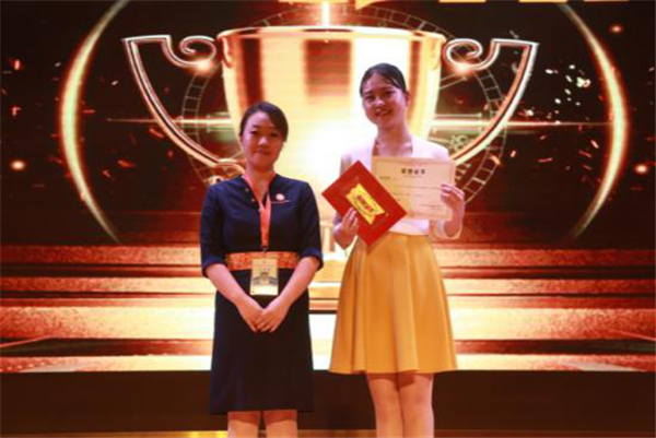 2018級空乘2班的劉潔源同學(xué)在舞臺上侃侃而談,憑借扎實的主持功底及優(yōu)秀的表現(xiàn)得到了評委的一致認(rèn)可,獲得本次主持人大賽冠軍,四川東星航空教育集團董事長助理劉勝輝為她頒獎。