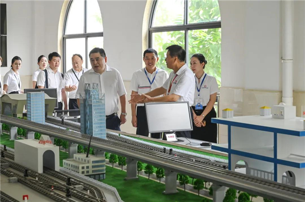 辜英智向李飚一行講解了學院每棟樓的名字由來、建筑風格、地理位置等。并參觀了學院實訓(xùn)中心的實訓(xùn)設(shè)備,多彩大講堂、鐘樓等特色建筑。