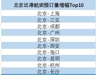 (圖說:北京降級后,出港航班預(yù)訂量增幅Top10)
