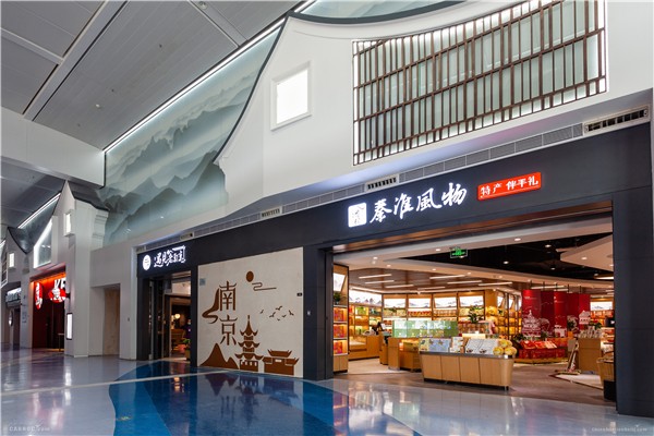 德克士、肯德基、賽百味、星巴克、口渴了、面包新語(yǔ)、Esenco Coffee、羅森超市、舌尖尖面館、和府撈面、苗小壇、鴨得堡、富春、秦淮小吃、心如蓮華、BALLY、施華洛世奇、AMUSE、BDL、金陵藏寶、金陵六朝、南京冠生園、桂花鴨、良品鋪?zhàn)雍桶槭侄Y店江蘇特產(chǎn)匯、秦淮風(fēng)物、遇見(jiàn)老南京、蔚藍(lán)時(shí)代書(shū)店等。(攝影:房天翔、張益晨)