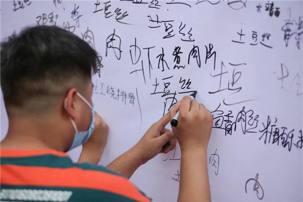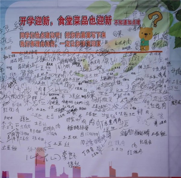 小編發(fā)現(xiàn)簽到墻一側(cè)食堂向新生公開(kāi)征集菜譜,特別有意思的是,土豆絲居然登上新生菜譜榜首,看來(lái)這一屆新生太好帶了。