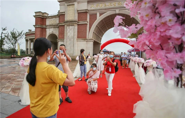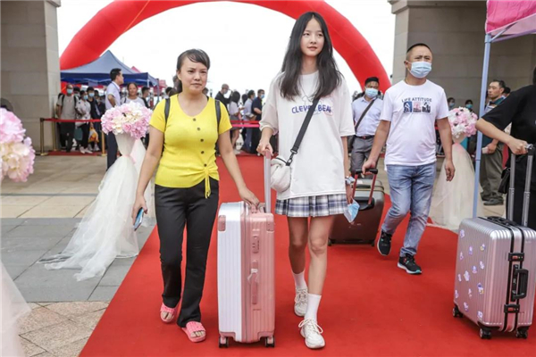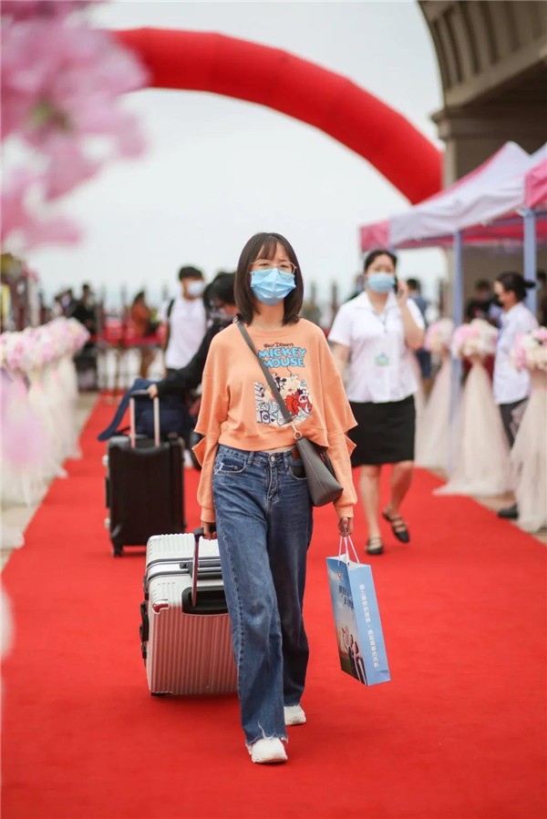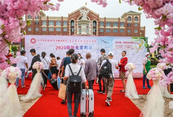 一條近百米長(zhǎng)的紅色地毯,從校門(mén)延伸至的瑞麗廣場(chǎng),兩旁的粉紅色路引花臺(tái)和浪漫花朵拱門(mén)顯得既隆重,又很有儀式感,在簽到墻上寫(xiě)上自己的名字,記錄進(jìn)天航的歷史里。