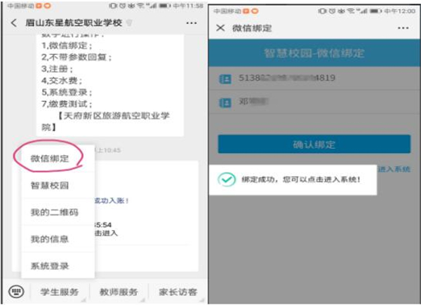 第二步 點(diǎn)擊學(xué)生服務(wù),微信綁定,輸入身份證號(hào) 姓名,綁定成功進(jìn)入系統(tǒng)。