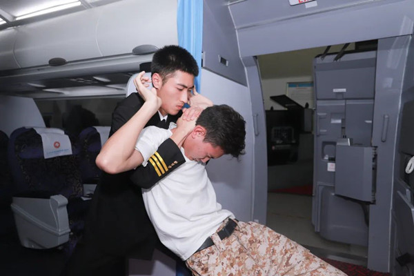 當(dāng)歹徒?jīng)_擊駕駛艙,我們可以利用歹徒背對(duì)我們的條件,進(jìn)行制服。