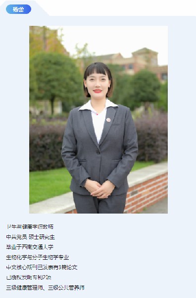 天府新區(qū)航空旅游職業(yè)學院衛(wèi)生與健康學院,是培養(yǎng)生物產品檢驗檢疫、健康管理、社區(qū)康復專業(yè)人才的二級學院,秉承“愛心傳道、精心呵護、嚴謹為醫(yī)、誠信為人”的宗旨,以立德樹人為根本,以服務地方衛(wèi)生健康產業(yè)發(fā)展需求、學生全面發(fā)展和高質量就業(yè)為導向,以培養(yǎng)高素質技術技能人才為核心,為區(qū)域經濟發(fā)展和衛(wèi)生健康事業(yè)發(fā)展做出自己的貢獻。