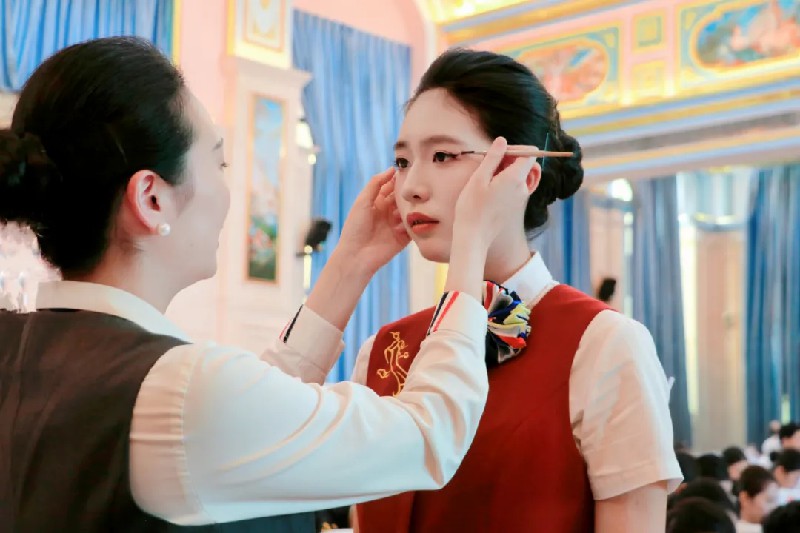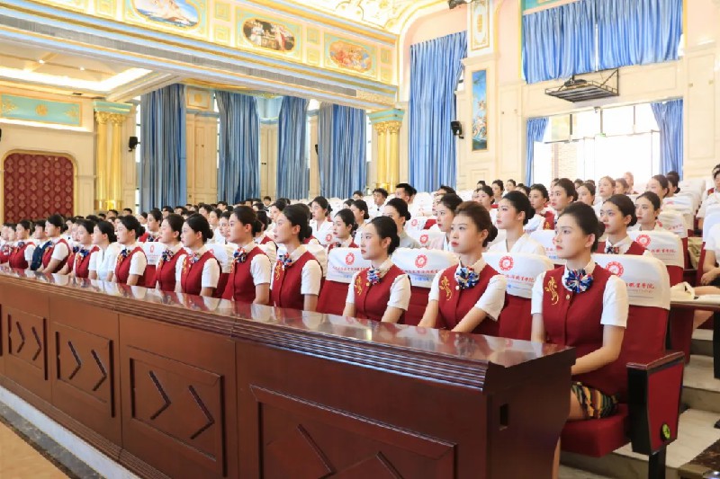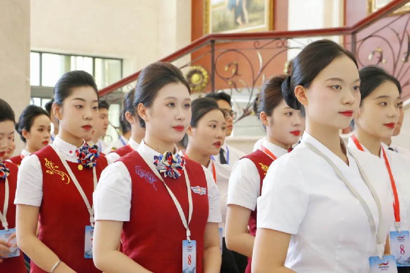 面試前,專業(yè)老師們化身“夢(mèng)想護(hù)航員”,逐一為學(xué)子整理制服領(lǐng)結(jié)、調(diào)整盤發(fā)弧度,校準(zhǔn)絲巾位置。候場(chǎng)區(qū)里,學(xué)生們身姿挺拔、微笑如春,用“職業(yè)標(biāo)準(zhǔn)站姿”和“微笑黃金弧度”征服評(píng)委。一位面試官感嘆:“貴校學(xué)生的職業(yè)形象管理,值得稱贊!”