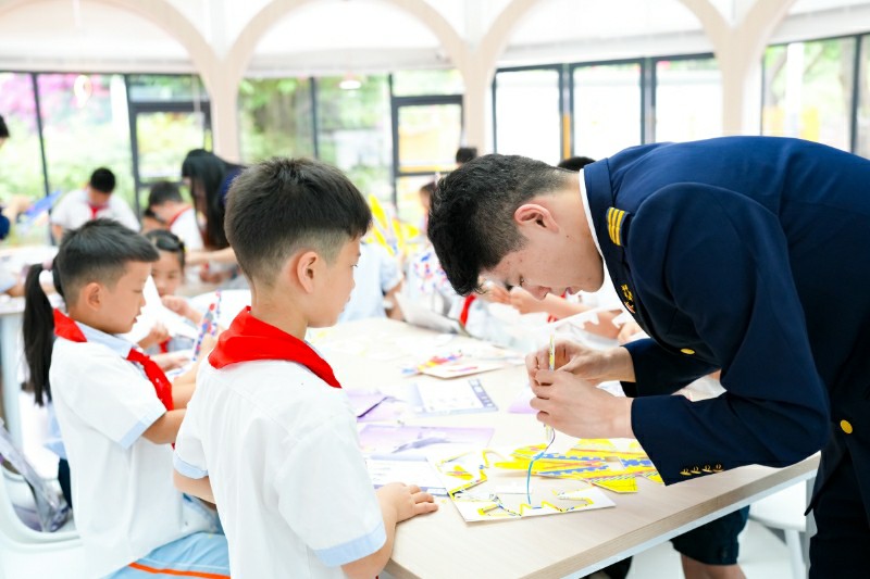 “哥哥姐姐,怎樣才能成為飛行員?”“黨的政策和民航發(fā)展有什么關(guān)系?” 在問答與討論環(huán)節(jié),黨員教師們與學(xué)生們親切互動,不僅解答民航知識疑惑,更巧妙融入黨的方針政策教育,引導(dǎo)孩子們樹立“科技報國”“嚴(yán)謹(jǐn)負(fù)責(zé)”的價值觀?,F(xiàn)場氛圍熱烈,紅色基因與科學(xué)精神在對話中悄然傳遞。