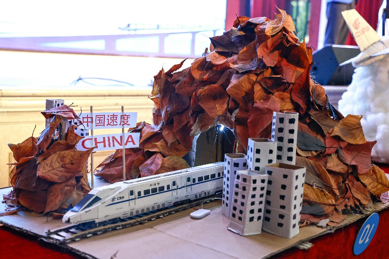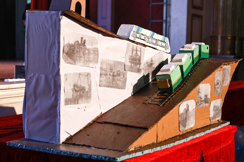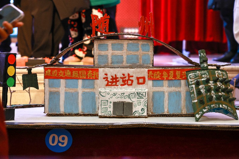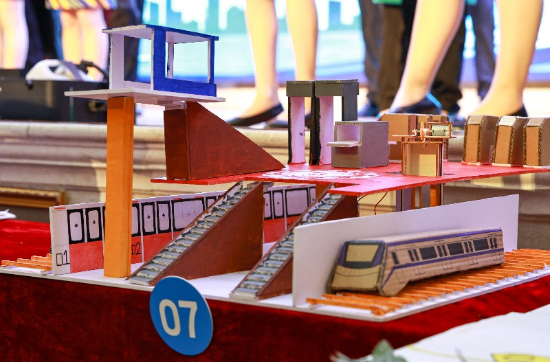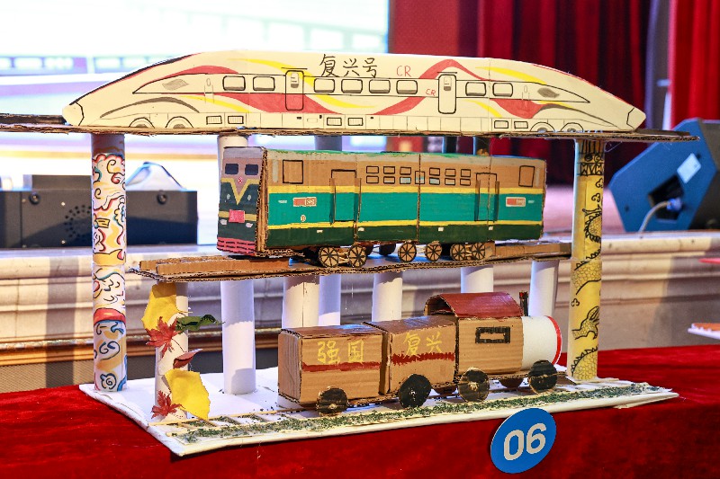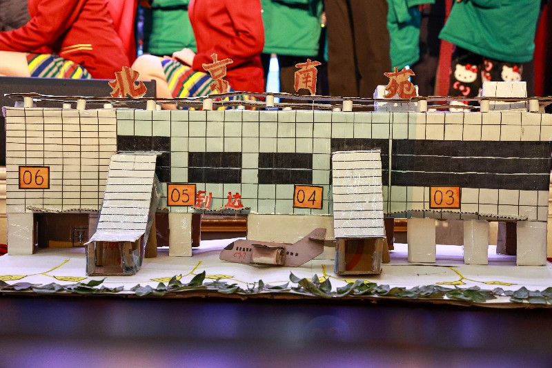 比賽正式開(kāi)始后,一件件模型依次亮相。選手們將課堂所學(xué)轉(zhuǎn)化為可視、可講、可運(yùn)行的作品:有的從中國(guó)鐵路發(fā)展歷程切入,通過(guò)模型呈現(xiàn)技術(shù)演進(jìn)的邏輯;有的聚焦國(guó)產(chǎn)大飛機(jī)C919,用比例結(jié)構(gòu)詮釋自主創(chuàng)新的成果;還有團(tuán)隊(duì)復(fù)刻五峰山長(zhǎng)江大橋的工程形態(tài),將橋梁結(jié)構(gòu)與受力特點(diǎn)清晰呈現(xiàn)。也有作品選擇貼近現(xiàn)實(shí)應(yīng)用,用環(huán)保材料搭建鐵路系統(tǒng)或車站場(chǎng)景,通過(guò)簡(jiǎn)潔卻完整的設(shè)計(jì)展現(xiàn)交通系統(tǒng)的運(yùn)行邏輯。