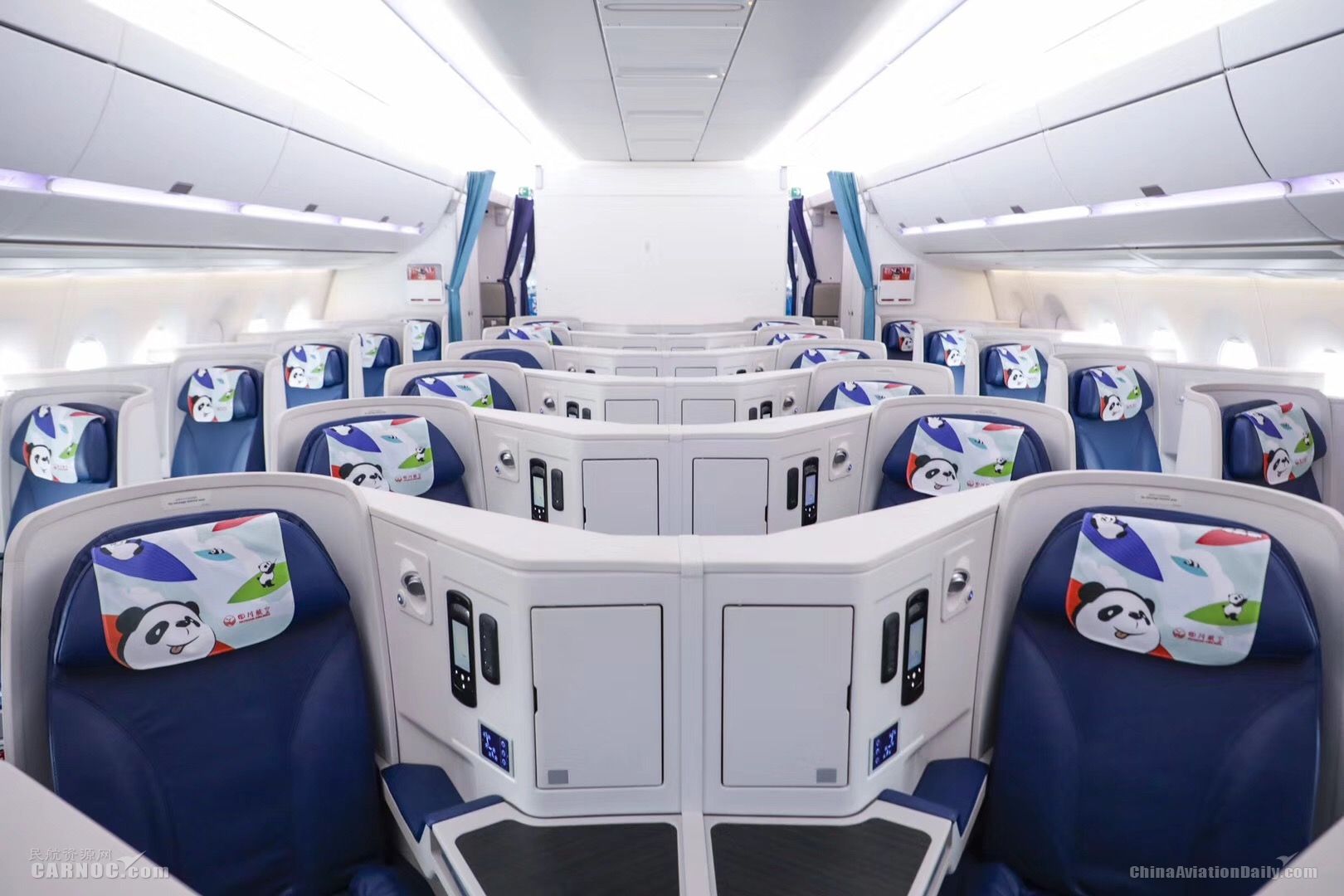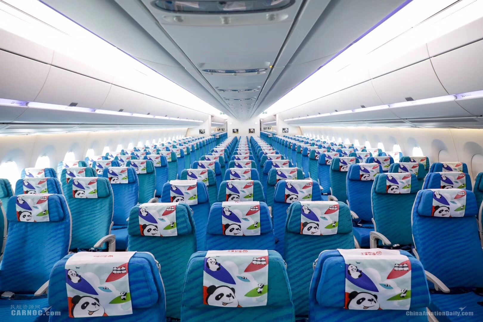 作為最新一代遠(yuǎn)程寬體飛機(jī),A350擁有寬敞舒適的座椅、寬大的全景舷窗、柔美的情境燈光、交互式娛樂(lè)系統(tǒng),為旅客帶來(lái)更豐富、更舒適、更愉悅的乘機(jī)體驗(yàn)。川航首架A350以創(chuàng)意熊貓主題彩繪噴涂飛機(jī)機(jī)身,在航班服務(wù)中融入熊貓?jiān)嘏c地域文化,讓更多中外旅客感受四川、感受中國(guó)。