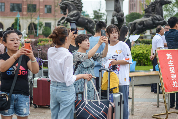 ——已有百余名來自山西、江蘇等省市的新生和家長早已等候在學院瑞麗廣場……