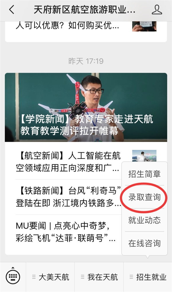 報讀我院考生可以通過關(guān)注“天府新區(qū)航空旅游職業(yè)學(xué)院”公眾微信號和官方網(wǎng)站進(jìn)行查詢,輸入考生身份證號或考生號,即可查詢錄取結(jié)果。