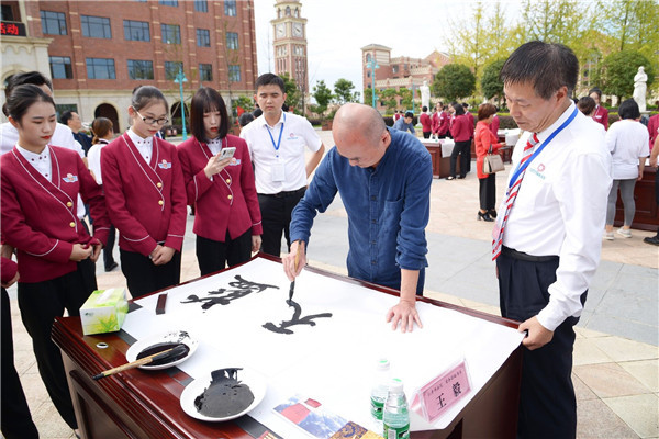 彭山區(qū)政協(xié)副主席王娜、彭山區(qū)教育局副局長曾明華、仁壽縣政協(xié)辦公室主任李彬、仁壽縣政協(xié)文史宣聯(lián)委副主任肖碧容、彭祖書畫院院長游洪全、仁壽書畫院院長李覺悟等領(lǐng)導(dǎo)及書法藝術(shù)家10余人參加了此次活動,四川東星航空教育集團董事長辜英智、副董事長萬永福,天府新區(qū)航空旅游職業(yè)學(xué)院院長劉存緒、副院長唐健禾、何明友、工會主席吳蜀等院領(lǐng)導(dǎo)出席了本次活動。