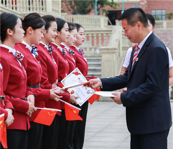 學(xué)院院長劉存緒教授發(fā)表講話。他講到,今天我們在這里隆重舉行升旗儀式,慶祝偉大祖國70華誕。70年來,中國人民在黨的領(lǐng)導(dǎo)下走過了站起來、富起來、強(qiáng)起來的崢嶸歲月。天府新區(qū)航空旅游職業(yè)學(xué)院與祖國一樣,走過了辦學(xué)的艱難,迎來輝煌的今日。學(xué)院學(xué)子從10多年前的500多人,發(fā)展壯大到12,000余人;學(xué)院的師資力量從30多人,到如今的800多人;學(xué)院的專業(yè)從幾個(gè),到如今的10多個(gè)。有了祖國的發(fā)展,學(xué)院才會取得這些成績。
