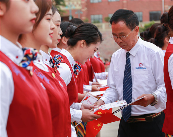 唐健禾同時(shí)希望同學(xué)們熱愛祖國,通過國慶70周年閱兵儀式,吸取愛國主義營養(yǎng),弘揚(yáng)愛國主義精神,為未來走向祖國民航事業(yè)做好準(zhǔn)備。