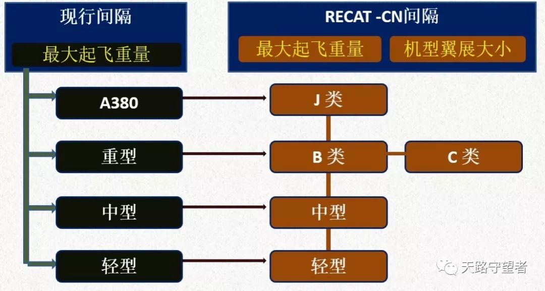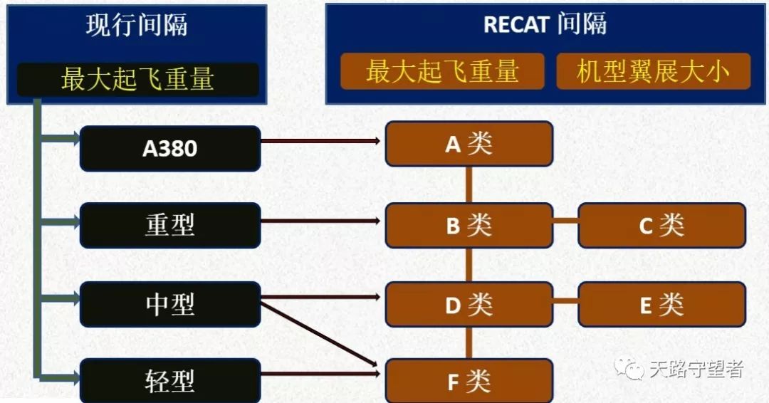 RECAT-CN標(biāo)準(zhǔn)立足國內(nèi)空管單位運(yùn)行的實(shí)際需要,在預(yù)期的容量提升效果上與美國RECAT-I標(biāo)準(zhǔn)(將航空器分為六類)一致,但操作上更便于管制員理解和使用。