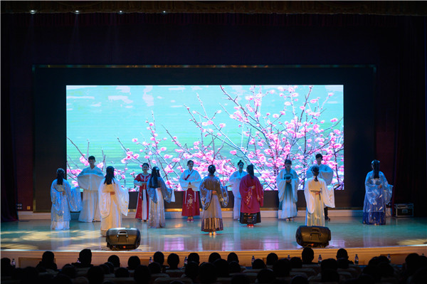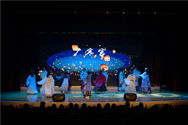 隨后漢服社帶來的服裝秀《廣寒宮》,輕盈的步伐、迷人的微笑,華麗的服飾展示了光芒璀璨的中華傳統(tǒng)文化。