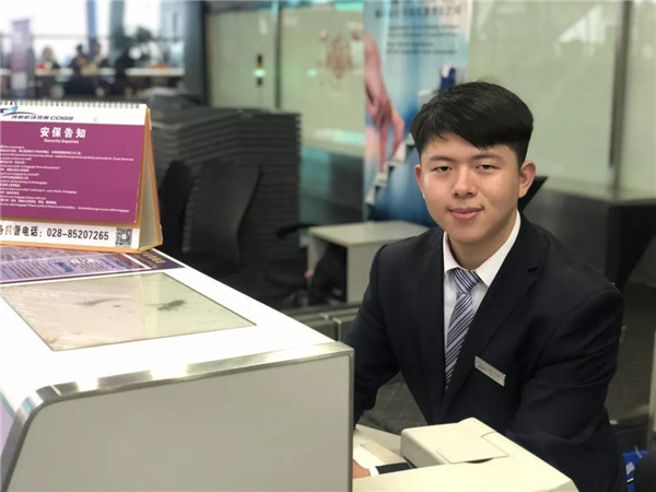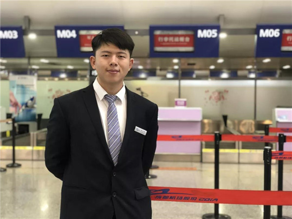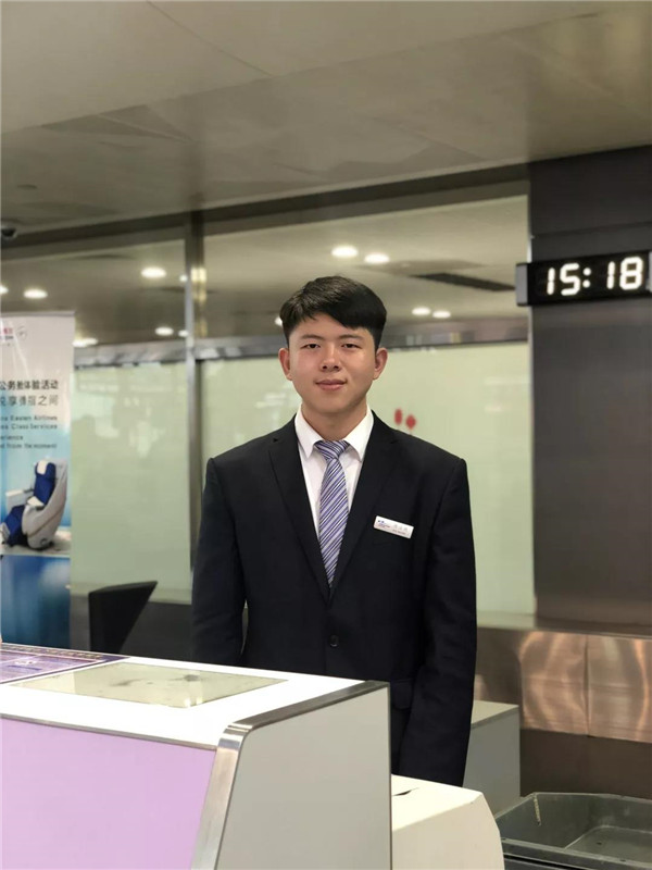 2018年,廣州白云機場貴賓廳來學(xué)院開展校園招聘,當時面試的同學(xué)有100多人,最后只選了10多人,陳志錢就是其中之一。在廣州白云機場貴賓廳實習(xí)了半年,后來雙流機場地服到我院招聘,他憑借著曾經(jīng)在白云機場實習(xí)的經(jīng)歷被雙流機場選中,應(yīng)聘上雙流機場地服崗位。