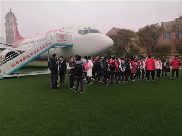 “其實,這不僅是一次研學游,還是一堂生動的國防教育課?!睂嵱栔行耐踅ǔ芍魅握f道。天府新區(qū)航空旅游職業(yè)學院自2018年起開展特色民航科研體驗課程,漂亮的校園整體風貌博采歐美名?!?、牛津、哥倫比亞大學之精華,風景優(yōu)美,是一所景觀學校、園林學校、影視拍攝基地。學校具有特色鮮明的民航主題,世界一流實訓體驗設備,被授予“中國民航科普教育基地”稱號。這里是學生進行研學的大課堂,是了解民航迅猛發(fā)展的重要一站,豐富的體驗場景屬性決定了研學課程的開展都能找到相對應場景及教學載體,無論是民航發(fā)展理論還是民航職業(yè)體驗,是世界民航走向,還是動手實踐操作,天航都有著豐富的資源,幫助孩子開闊視野、研有所獲,與學校共同把研學旅行的教育落到實處!