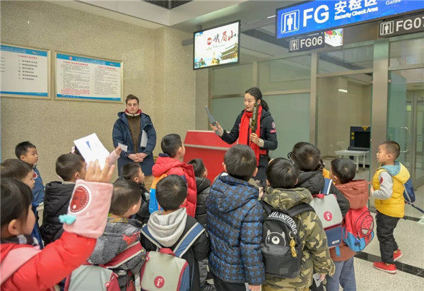 1月17日-19日,來自成都某國際私塾學(xué)校的400余名小朋友們來到天航開展“中國機長”研學(xué)游活動。他們在天航實訓(xùn)中心體驗了英語教學(xué)、機場安檢、模擬器駕駛、乘機體驗及角色扮演、動態(tài)模擬艙及海上逃生這6個項目的民航體驗教學(xué)項目,從體驗中去感受中國民航的發(fā)展。